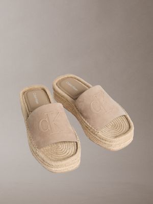 109,90 €(inkl. MwSt.)Die von sonnenverwöhnten Tagen inspirierte Espadrille-Kollektion wird aus natürlichem Raffiabast unter Verwendung traditioneller Techniken hergestellt. Ein geformtes, gepolstertes Fußbett unterstützt jeden Schritt, während das charakteristische CK-Branding für ein subtiles, modernes Finish sorgt.
