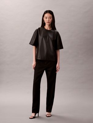 109,90 €(inkl. MwSt.)Modern und lässig: Dieses T-Shirt ist aus einem glatten Material in Lederoptik gefertigt und hat eine lässige, minimalistische Form.