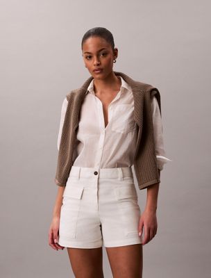 79,90 €(inkl. MwSt.)Diese Shorts aus dehnbarer Baumwolle hat eine leichte A-Linienform, die durch übergroße aufgesetzte Taschen akzentuiert wird, die den Look prägen.