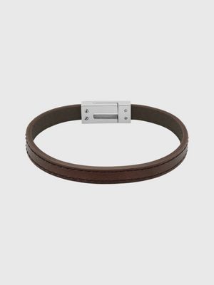 79,00 €(TVA comprise)Ce bracelet en cuir comporte une étiquette d'identification en métal brossé avec un détail décentré mettant en valeur les espaces.