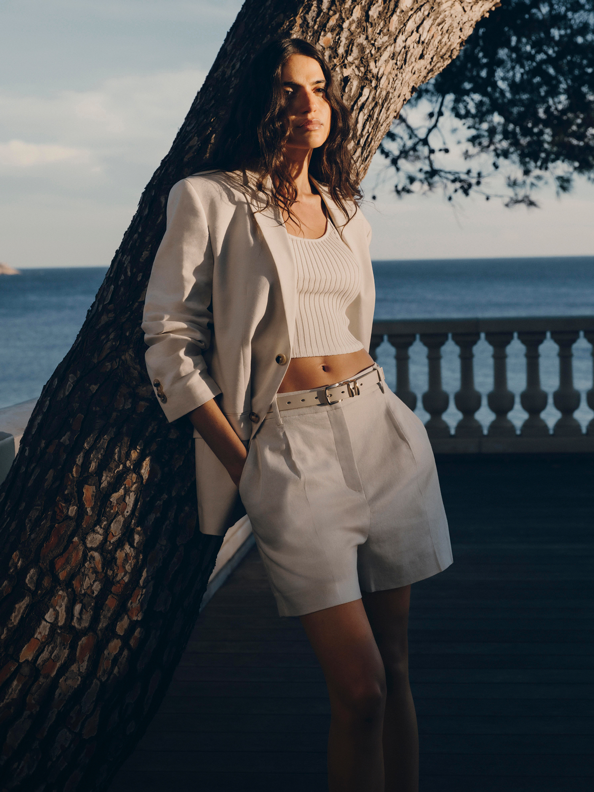 Blazer casual à ceinture en sergé