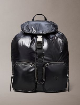 Sac à dos en nylon métallisé avec poche à rabat